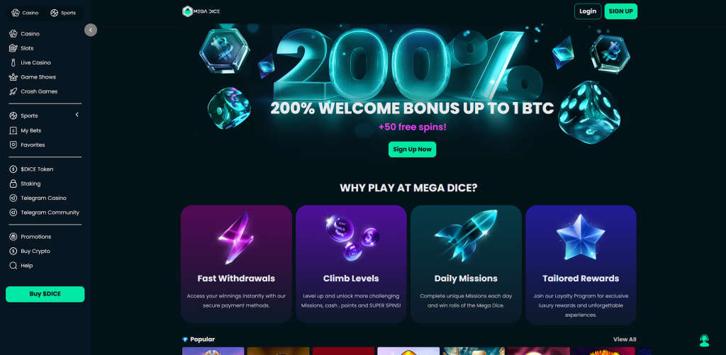 | Mega Dice | 4.4/5 | Colección top de juegos de casino online con retiros en minutos | 200% hasta 1 BTC + 50 giros gratis |
