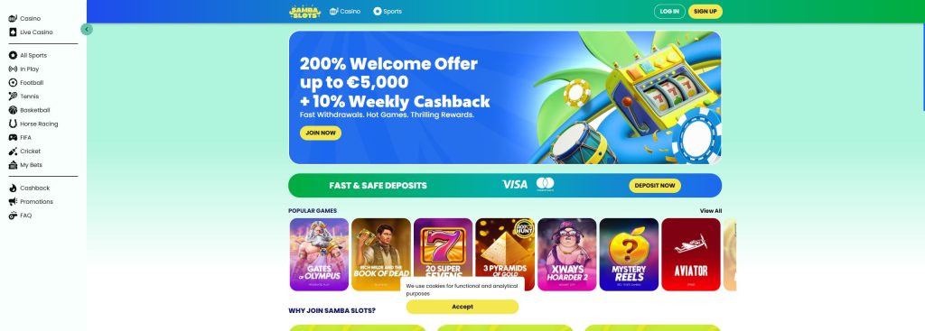 En banca, Samba Slots acepta Visa, Mastercard, Apple Pay, Google Pay y Bitcoin para depósitos y retiros, y cuenta con atención al cliente 24/7 en cinco idiomas diferentes. Opera bajo la licencia de Curaçao Gaming Control Board.